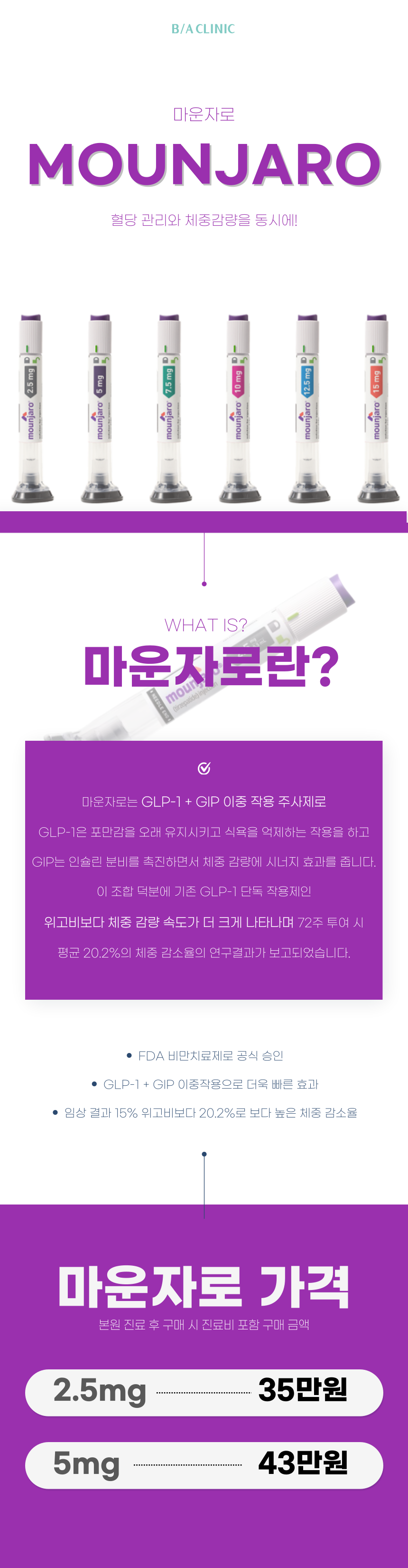 대전 마운자로란 GLP-1/GIP 이중 작용제인 티르제파타이드(Tirzepatide)를 주성분으로 하는 비만 치료제로