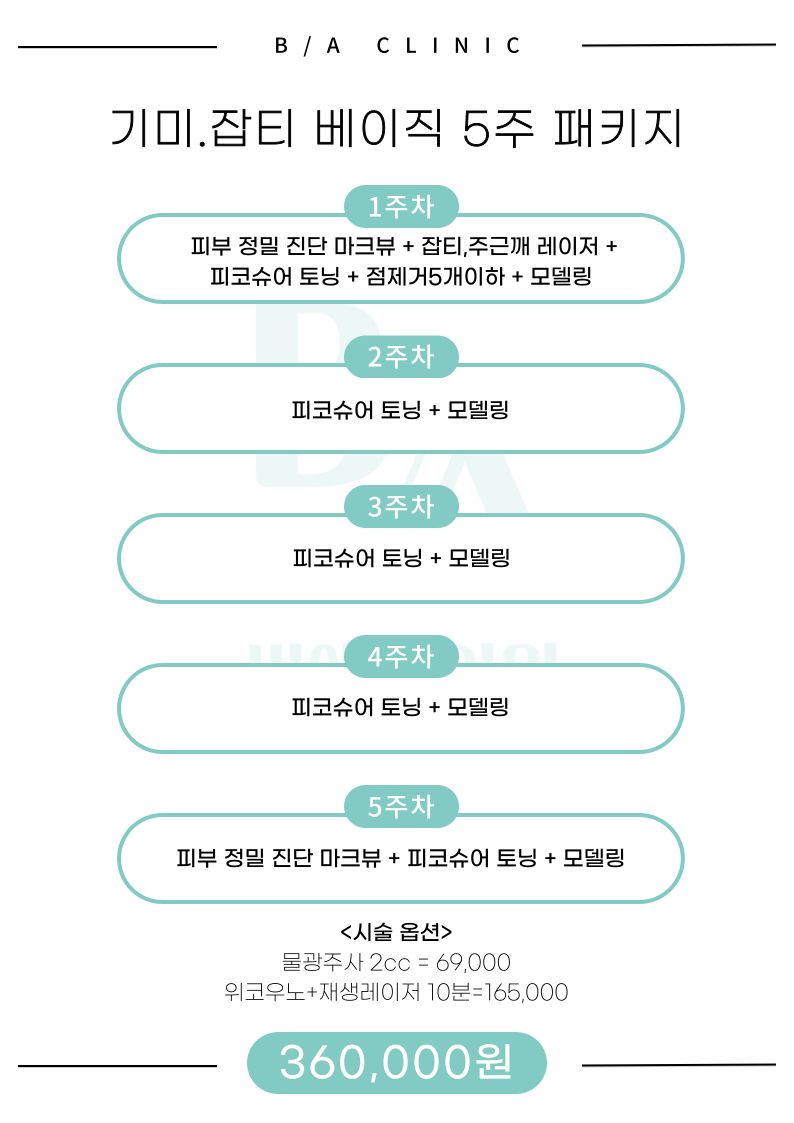 5주 : 잡티,주근깨 레이저 + 피코슈어 토닝 + 모델링